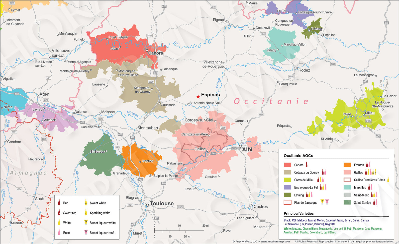 A client requested to crop a small portion from our existing Southwest France wine map for their website. A custom location was added and the color scheme changed to match the client's branding. Final wine map was provided to the client as a JPEG.